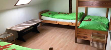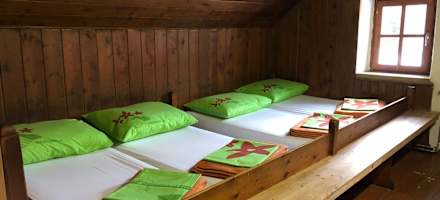 16 Schlafplätze im Lager, ein Vierbettzimmer, Warmwasser-Dusche und WC vorhanden. Kochmöglichkeit auf dem Holzofen, geheizt wird mit Gas. Übernachtungen mit Hunden nur auf Anfrage, guter Handy-Empfang. Bezahlt wird bar.