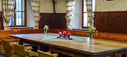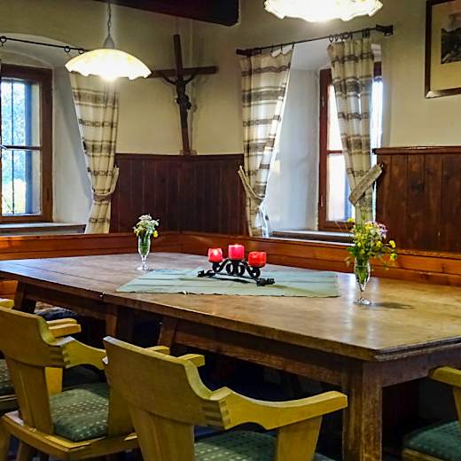 Das Eidenberghaus lockt neuerdings mit Eisstockschießen. Die Bahnen sind von 14 bis 21 Uhr geöffnet. Und wem’s draußen zu kalt ist, der wärmt sich in der Hütte am Kachelofen, sofern die Hütte belegt ist. Wenn sie das ist, ist auch immer der Hüttenwirt anwesend. Die Hütte verfügt im Innenraum über rund 30 Sitzplätze, von der nach Westen ausgerichteten Terrasse genießt man einen wunderbaren Weitblick.