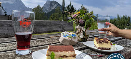In der gemütlichen Gaststube oder auf der Sonnenterasse mit herrlichem Ausblick auf das Gesäusemassiv genießt man klassisches Bergsteigeressen wie Schweinsbraten und Kaspressknödelsuppe. An heißen Tagen gibt es mediterranen Nudelsalat und Rindfleischsalat und als Nachspeise immer verschiedene hausgemachte Mehlspeisen und Eisbecher. Zusätzlich kann man aus einem feinen Weinangebot wählen.