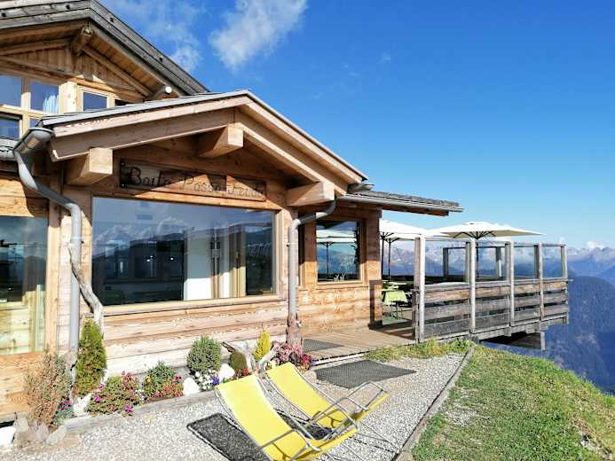 Leicht erreichbare Hütte auf 2.200 m Meereshöhe an der Bergstation des Sesselliftes Gardonè-Feudopass mit prächtiger Aussicht auf die Bergwelt der Dolomiten und die Lagorai-Gruppe in den Fleimstaler Bergen.