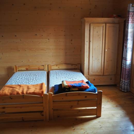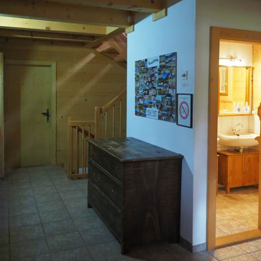 In dieser stilvollen, aus hellem Holz neu erbauten und für eine Selbstversorgerhütte geradezu luxuriösen Hütte fehlt’s an nichts. Perfekt ausgestattete Küche, großzügiger Aufenthaltsraum mit zahlreichen Gesellschaftsspielen, gemütliche und ebenfalls große Zimmer zum Teil mit Balkon.