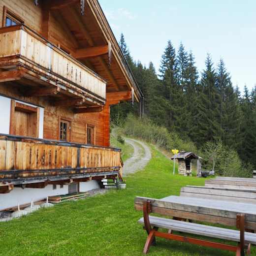 Man erreicht die Hütte von Maishofen/Lahntal über den kindertauglichen Oitberg-Güterweg ohne große Mühen. Maishofen selbst liegt am Nordufer des Zeller Sees.