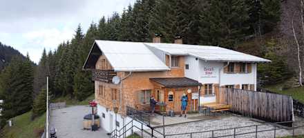 Die nächstgelegene Hütte ist das Gasthaus Dünsler Älpele, das nur 5 min entfernt ist. Weiters: Freschenhaus (1.846 m, 6 h).