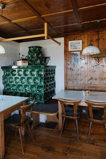 Gemütliche Stube mit Kachelofen auf der Göppinger HütteFoto: Elias Holzknecht