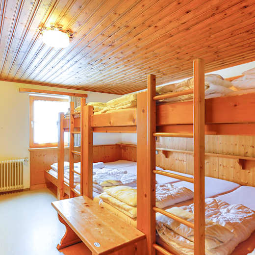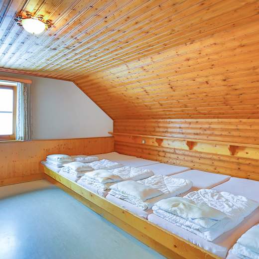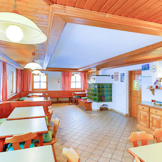 Da es sich um eine Selbstversorgerhütte handelt, muss für Verpflegung gesorgt werden. Getränke werden auf Wunsch bereitgestellt, ebenfalls vorrätig sind diverse Gesellschaftsspiele. Die Küche ist perfekt ausgestattet, der gemütliche Aufenthaltsraum mit Kachelofen bietet ebenso vielen Personen Platz, wie es Schlafplätze gibt. Die Hütte liegt direkt an der Skipiste und verfügt über einen Skistall und einen Skischuhraum.