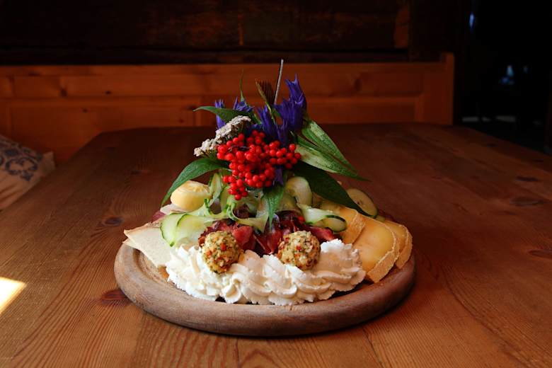 Wenn man schon mal hier ist, sollte man unbedingt die frisch zubereiteten Köstlichkeiten aus der Küche ausprobieren. Produkte wie Butter, Käse, Kaßpressknödel, Speck, Kuchen und das ganz spezielle Apfelbrot - eine Mischung aus Rührkuchen und Früchtebrot - werden hier komplett selbst hergestellt.