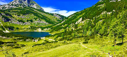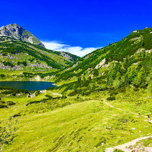 Nur rund 30 Minuten Gehzeit entfernt liegt auf 1.691 m der malerische kleine Henarsee.