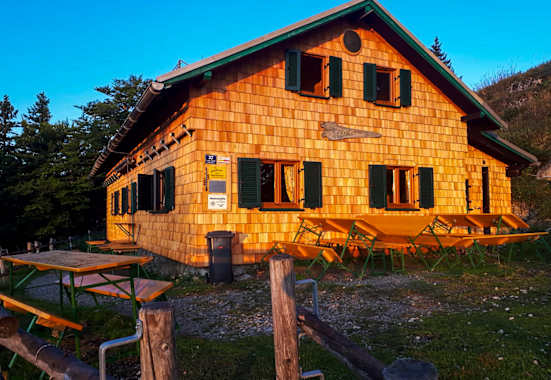 Die nächstgelegene Hütte ist die Halterhütte auf 1.450 m, die in 1 min Gehzeit zu erreichen ist. Weiters: Schneealpenhaus (1.788 m, 3:45 h).