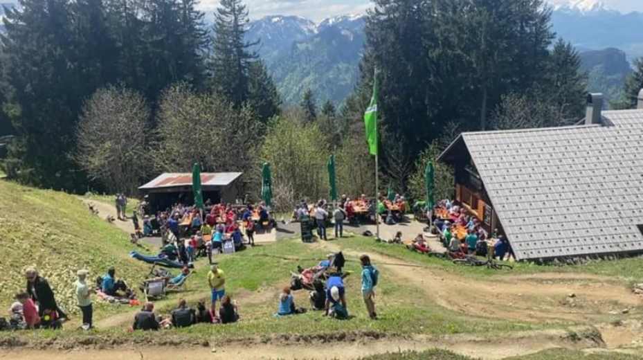 Skifahrer und Snowboarder machen auf Hochälple-Hütte gerne Rast. Denn höher hinauf geht es im Skigebiet Bödele nicht. Und die Lank-Hütte, die nächste über Pisten und mit Liften erreichbare Einkehrmöglichkeit ist ein Stück weit weg. Bei kaltem Wetter schafft die warme Stube Wohlig- und Behaglichkeit. Bei Schönwetter hält sich das natur- und bergverrückte Völkchen auf der Sonnenterrasse auf und genießt die Aussicht, die frische Bergluft und die Sonnenstrahlen.