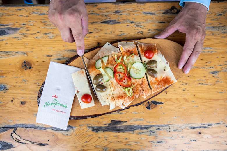 Verspeist wird, was Bauern und andere Produzenten aus der Region liefern, bei den Getränken verhält es sich auf dieser Hütte, die mit dem Österreichischen Umweltzeichen ausgezeichnet ist, ebenso. Das Bier kommt vom Fass. Die Speisekarte wird laufend mit extra Schmankerl ergänzt und es wird auch auf Unverträglichkeiten Rücksicht genommen; gerne werden z.B. auch glutenfreie Speisen angeboten. Gemütliche Stube, schöne Terrasse, dazu Bänke und Tische auf der Wiese.