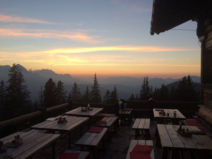Das Hüttenteam bewirtschaftet eine Karwendel-Hütte, die sich ihren, über die Jahre erworbenen Charakter erhalten hat. Dazu passend, wird bayerische Ess- und Trinkkultur gepflegt. Das heißt, dass man sich hier zur zünftigen Brotzeit und Bier einfinden kann. Und garantiert satt geht. In der Gaststube und auf der Sonnenterrasse ist bayerische Gemütlichkeit oberstes Gebot.