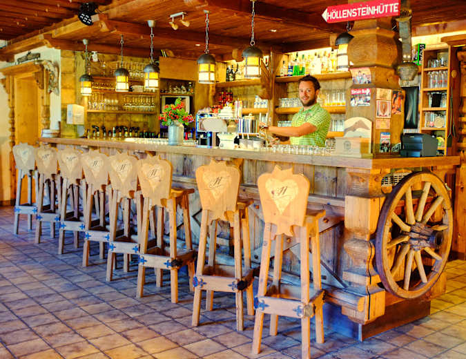 Familie Erler bewirtet die Gäste auf der Höllensteinhütte ihren kulinarischen Bedürfnissen entsprechend. Graukassuppe, Kaspressknödelsuppe oder Kasspatzlang sind die bodenständigen Gerichte auf der Karte. Und auch Klassiker wie Kaiserschmarrn, Germknödel und eine zünftige Jause. Gegessen wird in Jagd-, Wilderer- oder Kaminstube. Die Hütte beherbergt weiters ein Bergbauernmuseum, in dem altes Handwerkszeug ausgestellt ist.