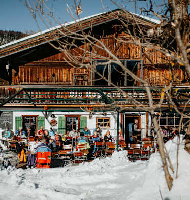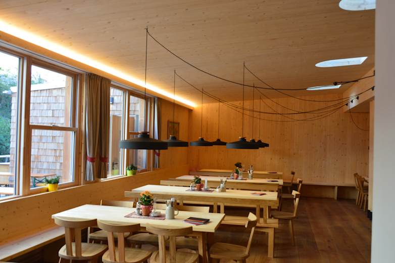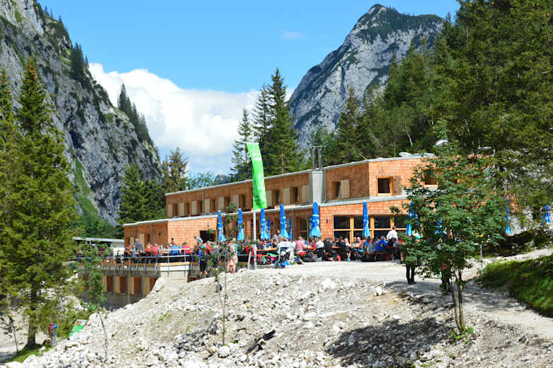 Zusätzlich zu einer umfangreichen Speisekarte kann man auf der Höllentalangerhütte auch mit Halbpension übernachten und für den nächsten Tag ein Jausenpaket bestellen.