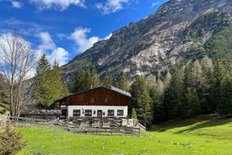 Angesiedelt auf herrlichen Almböden mit den hohen Felswänden des Serleskamms und insbesondere der Kirchdachspitze (2.840 m) direkt vor Augen herrscht hier die perfekte Almidylle.