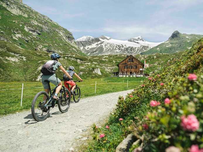 Die Johannishütte am Großvenediger - beliebtes Ziel für E-Biker. Foto: Attic Film GmbH, Eder Philip - attic film; Tirol Werbung