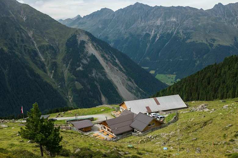 Die nächstgelegene Hütte ist die Saigisalm (1.872 m), die in ca. 2,5 Stunden zu Fuß erreichbar ist.