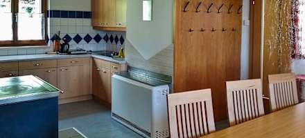 Zwei Ferienwohnungen für je 8 Personen, komplett ausgestattet, Decken (ohne Bettwäsche), Geschirr, Kochmöglichkeit, Waschräume mit Duschen, 4 WCs, Elektroheizung, Heizmaterial zum Kochen vorhanden. In beiden Etagen ein elektrischer Schuhtrockner. Mäßiger Handyempfang, das Mitbringen von Hunden im Vorfeld abzuklären.