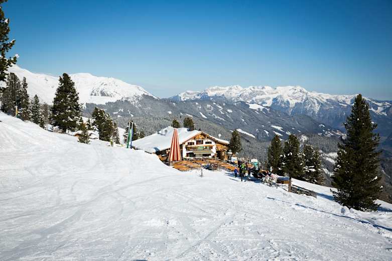 Sonnig gelegen: die Kaltenbacher Skihütte im Zillertal Foto: Julia Rotter, Bergwelten Zillertal-Magazin, 02/2015