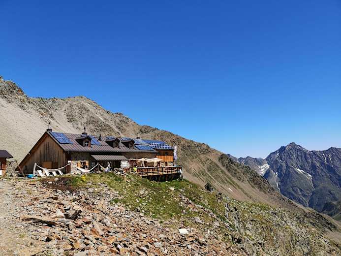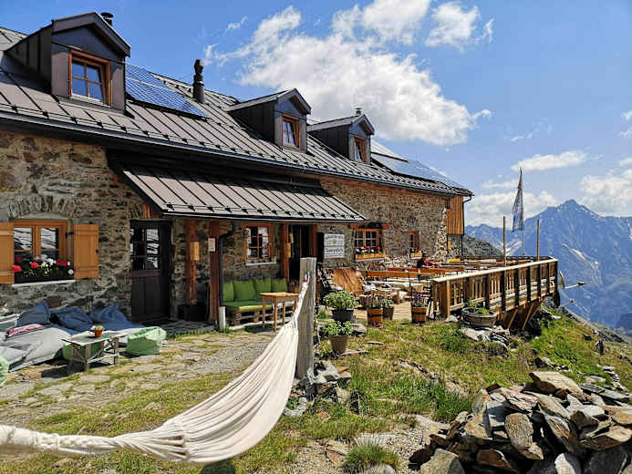 Die Kaunergrathütte (2.817 m) sitzt hoch über dem Tiroler Pitztal.Foto: Michael Dobler, Kaunergrathütte