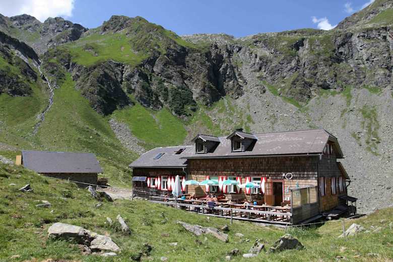 Nächstgelegene Hütte: Duisitzkarseehütte (1.640 m, 1:30 h); Fahrlechhütte (1.648 m, 1:30 h); Landawirseehütte (1.985 m, über Trockenbrotscharte; 2 h); Ignaz-Mattis-Hütte (1.986 m, 3:00 h); Gollinghütte (1.641 m, 5 h); Giglachseehütte (1.955 m).