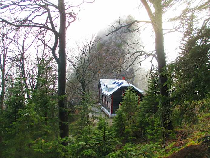 Die nächstgelegene Hütte ist die Fischerhütte auf 2.049 m, die in 2 h erreichbar ist. Weiters: Weichtalhaus (547 m, 2:30 h), Beghaus Hochschneeberg (1.800 m, 2:30 h)