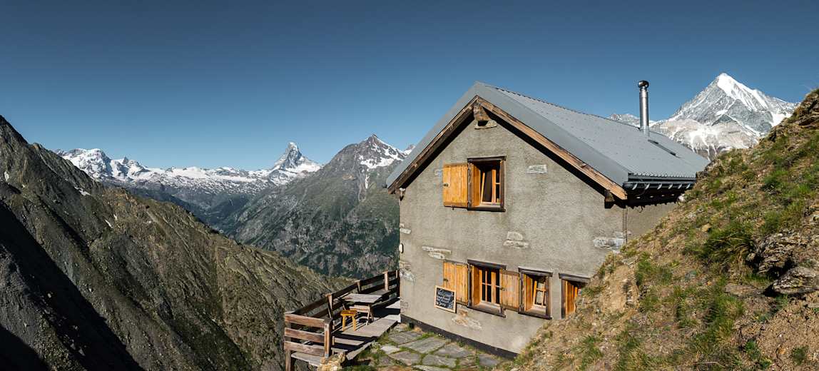 Die nächstgelegenen Hütten sind die Bordierhütte (2.886 m), die Domhütte (2.940 m) und die Täschhütte (2.701 m).