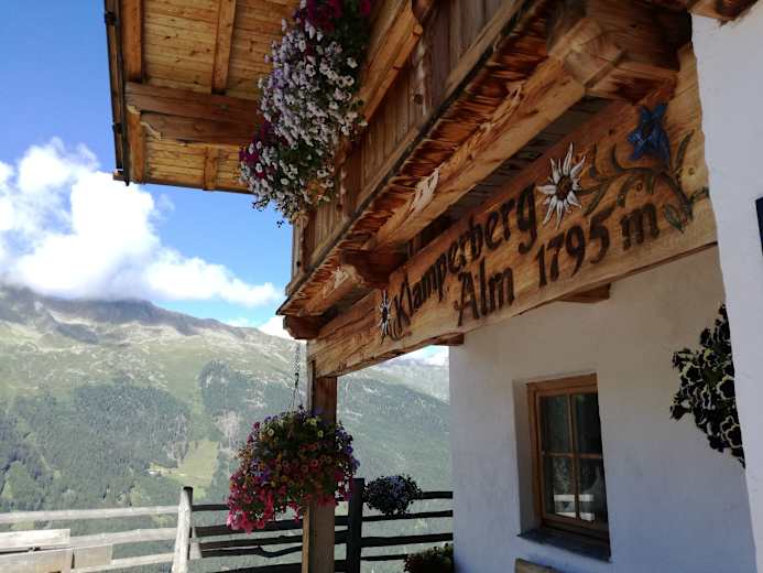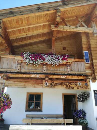 Auf der Speisekarte der Klamperbergalm steht traditionelle Tiroler Hausmannskost wie Speckknödel oder Leberkäse und Kaiserschmarrn – alles wird vorwiegend mit Erzeugnissen aus der eigenen Landwirtschaft zubereitet. Unbedingt probieren sollten Sie auch die Kiachl, diese werden immer sonntags angeboten.