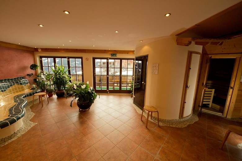 Nach einem anstrengenden Tag kann man im Panorama-Wellnessbereich mit Infrarot-Kabine, Dampfbad und Zirbenholz-Sauna abschalten und die Muskeln entspannen. Die komfortablen Zimmer sind gut ausgestattet und Bücherwürmer können in der hauseigenen Bibliothek herumschmökern. Die Kinder amüsieren währenddessen in der Spielecke.