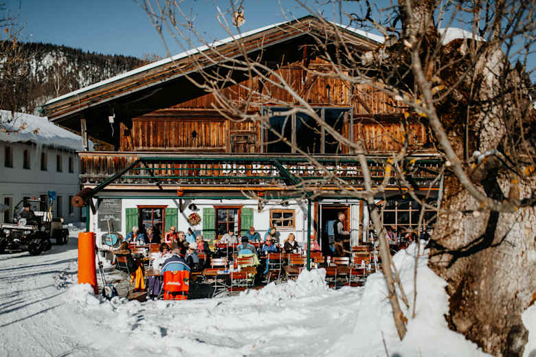 Im Landgasthof wird das ganze Jahr über (bis auf Betriebsurlaubszeiten und Ruhetage) auf gutbürgerliche Tiroler Küche gesetzt. Dazu gibt es frischgezapfte Erfrischungen auf der Sonnenterrasse oder in den gemütlichen Innenräumen. Der Gasthof bietet Platz für 150 Personen im Innenbereich und 100 Gäste auf der Terrasse. Neben dem Haus gibt es eine erfrischende Kneippanlage und ein kleines Bergbauernmuseum erzählt interessante Geschichten aus früheren Tagen. Im Herbst wird hier besonders gern zum Törggelen geladen, auf Bestellung darf man sich zudem auf hausgemachten Blaubeerschmarrn und fangfrischen Fisch aus der Leutasch freuen.