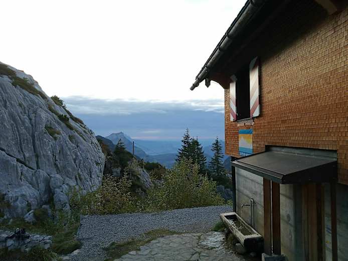 Ausgangspunkt ist Riemenstalden, das doch im Kanton Schwyz liegt. Mit der Luftseilbahn geht es hinauf bis zur Bergstation. Von dort es ein nur noch ein kurzer Fussmarsch bis zur Hütte.