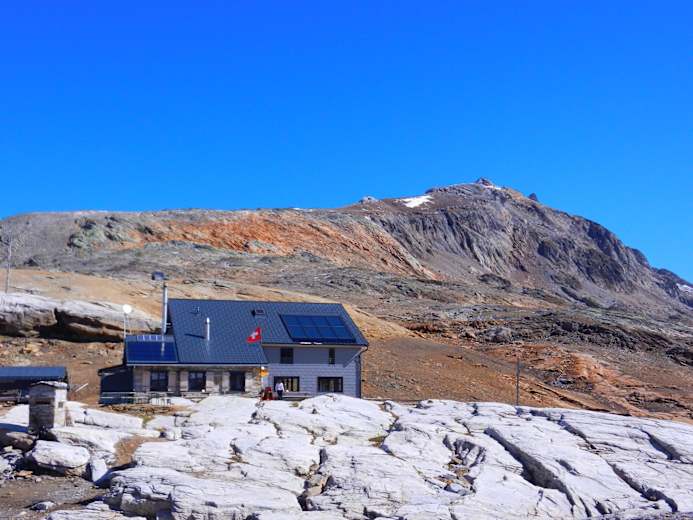 Die im Minergie-Standard ausgebaute Hütte lädt zum Verweilen ein. Grosse Panoramafenster im gemütlichen Aufenthaltsraum geben den Blick frei auf die Walliser Viertausender. Auf der Terrasse lassen sich regionale Spezialitäten und feine Walliser Weine geniessen. Im Sommer begeistert der kleine Alpenzoo Klein und Gross: zwei Hängebauchschweine, Hühner, Katzen und ein Hund tummeln sich rund um die Hütte. Aber auch wild lebende Tiere wie Steinbock, Murmeltiere, Schneehühner oder Bartgeier lassen sich regelmässig beobachten und bestaunen. Kleine Bergseen auf dem Hochplateau rund um die Hütte laden zum Baden und Spielen ein und sind insbesondere für Familien ideal.