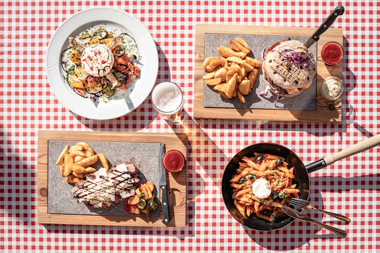 Hüttenwirt Alessandro Secci tischt gerne gut auf: Mitterloch-Burger mit Vinschger Paarlbrot, Rindfleisch aus Mals, Almkäse vom Nachbarn und eingebranntem Maseben-LogoFoto: Rudi Wyhlidal, Bergwelten Magazin 06/2019
