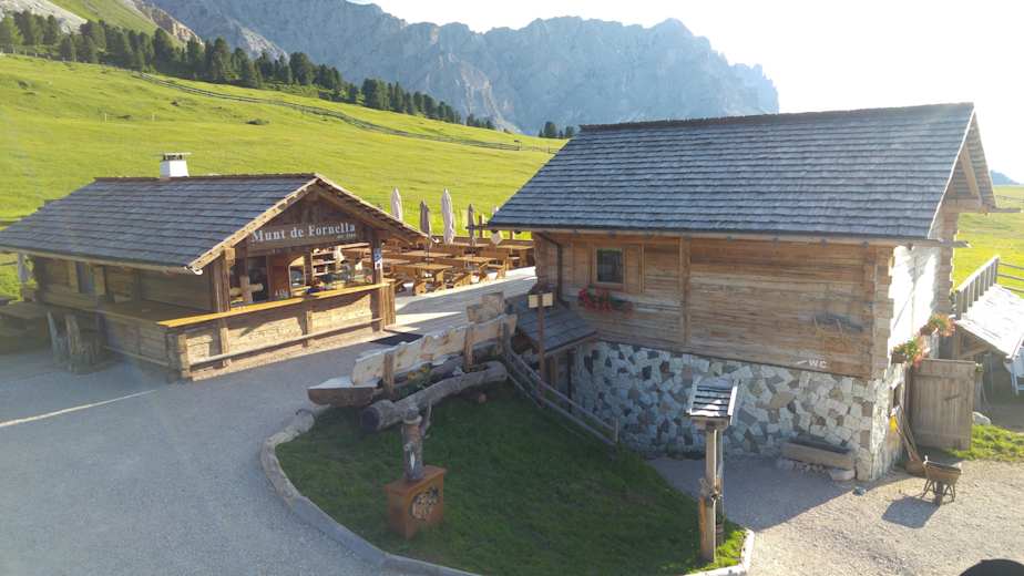 Die Munt de Fornella ist eine urige Hütte, die direkt unter den Steilwänden des Peitlerkofels in den artenreichen Peitlerwiesen steht. Sie ist vom Würzjoch in rund 20 Minuten zu erreichen und hat im Sommer täglich ohne Ruhetag geöffnet.