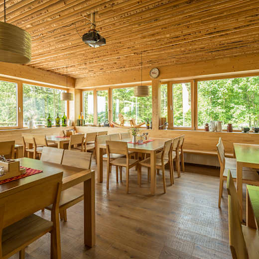 Im Gastzimmer finden 50 Personen Platz, im Stüberl ebenso und auf der Terrasse rund 150. Es herrscht Bedienung. Kinder können im Hüttenumfeld gefahrlos herumtoben.