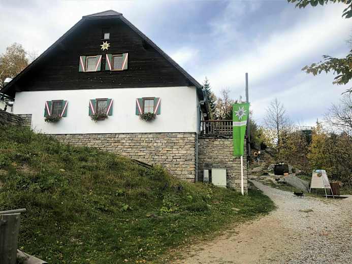 Die Hütte ist trotz ihrer Waldlage unterhalb des Gipfelkreuzes mit dem Auto erreichbar (Parkplatz 10 min unterhalb der Hütte). Besucher genießen regionale Schmankerln und die traumhafte Aussicht – besonders sehenswert sind die großen Gesteinsformationen im Gipfelbereich des Nebelsteins.