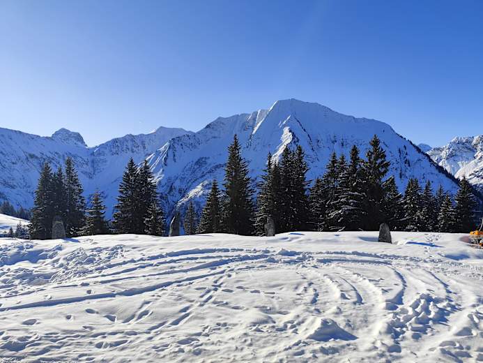 Bergrestaurant Diedamskopf (2.005 m, 2 h), Wedelhütte (1.550 m, 1:30 h), Diedamskopf (2.090 m, 2:30 h)