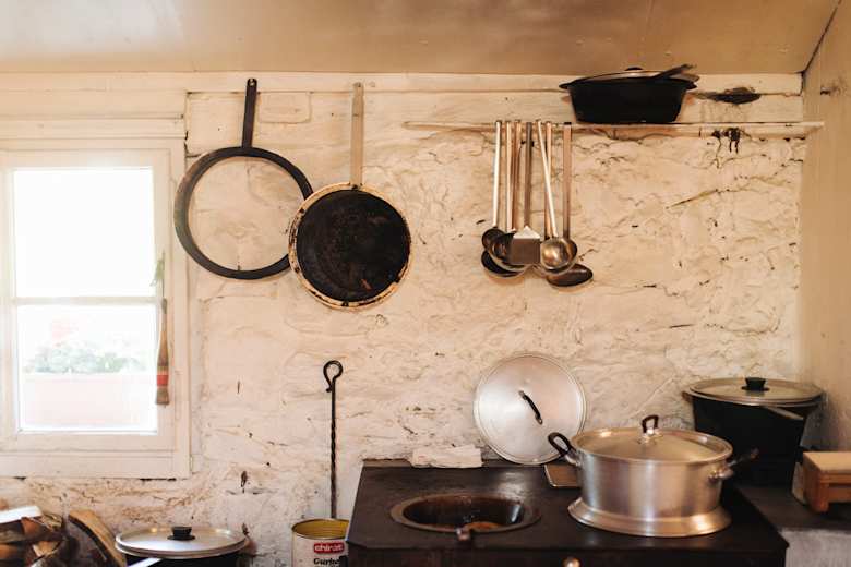 Die Küche der Ochsenhütte erinnert mit der spartanischen Einrichtung an alte Tage. Foto: Elias Holzknecht, Bergwelten Magazin Schweiz, 02/2019