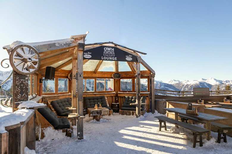 Auf der Sonnenterrasse finden bis zu 220 Personen Platz, in den Stuben innen mehr als 300. Besonders beliebt sind die Schneebar und die Sonnenlounge auf der Terrasse, wo man gerne ein Gläschen Wein aus dem eigenen topgefüllten Weinkeller genießen kann. Oder man gönnt sich einen Schluck des selbstgemachten Gins, der sogar mit dem eigenen Logo versehen ist.