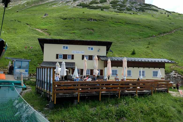 Oder man fährt bis zum Ort Karersee/Carezza und nimmt den Sessellift, der direkt bis zur Hütte fährt.