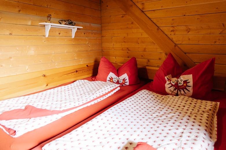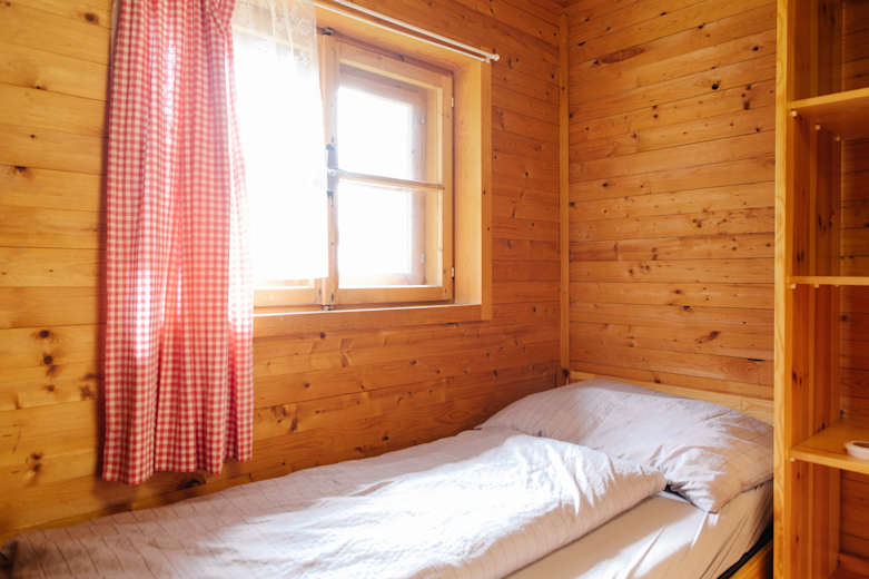 Eines der Zimmer auf der Pfaffenhofener Alm. Foto: Elias Holzknecht