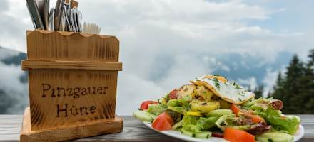 Das Hüttenteam bietet regionale und frische Küche mit selbstgemachten Säften und saisonalen Speisen an.