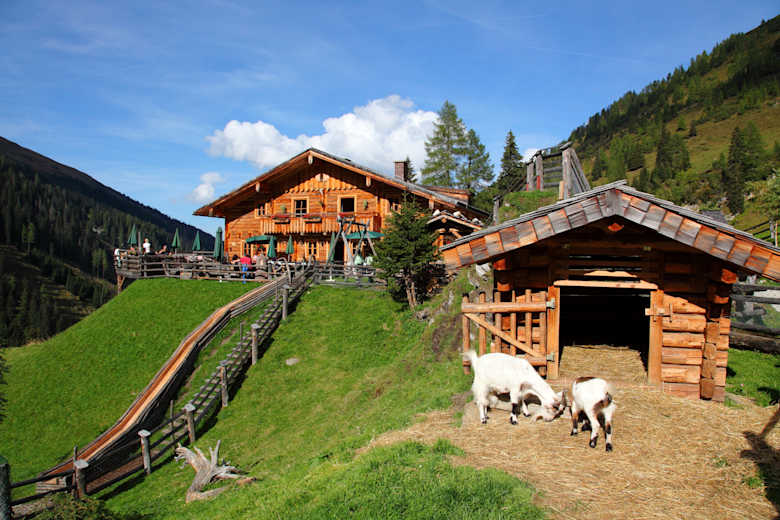 Die Reitalm auf 1.600 m oberhalb von Hüttschlag bei Großarl und ist ein beliebtes Wanderziel vor allem für Familien. Hier wandern auch die Kinder gerne hin und die Eltern lassen sich, während sich die Kleinen am Spielplatz austoben, mit Köstlichkeiten aus der eigenen Produktion verwöhnen. Ein schöner Ort am Talschluss des Großarltales, das als verbindendes Landschaftselement zwischen den Hohen und den Niederen Tauern gilt.