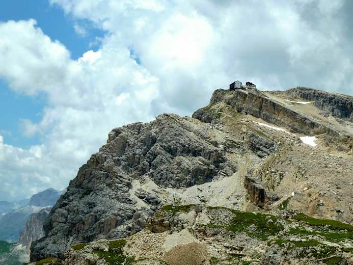 Die Lagazuoi-Hütte befindet sich auf dem Gipfel des Kleinen Lagazuoi knapp 700 m oberhalb des Falzaregopasses zwischen Cortina d'Ampezzo und dem Gadertal. Man erreicht die Hütte leicht zu Fuβ oder mit der Lagazuoi-Seilbahn.