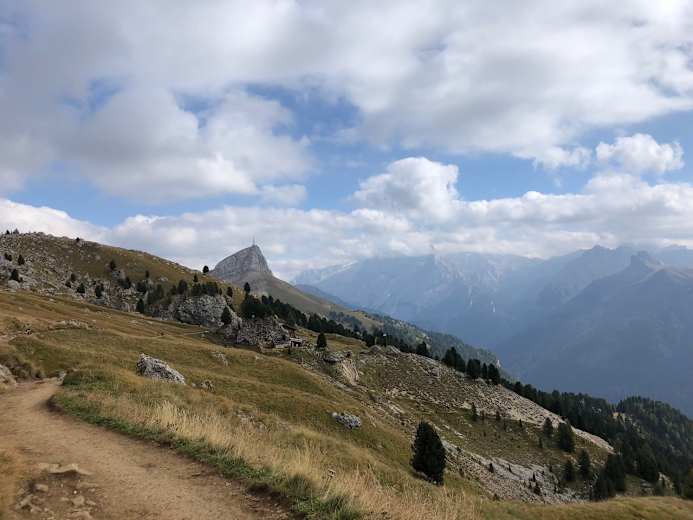 Alternativ kann man auch vom Selljoch in 1 h 15 min aufsteigen, von der Seiser Alm über die Plattkofelhütte in 1 h oder von Campitello aus in Richtung Durontal und über die Micheluzzi-Hütte in rund 3 h 30 min.