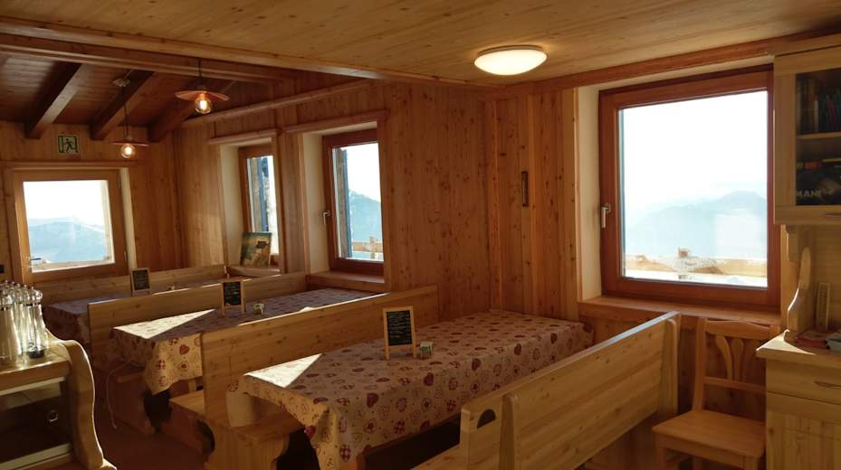 Von der Hütte aus erreicht man in fünf Minuten den Gipfel des Monte Stivo, wo die atemberaubende Aussicht über den Gardasee, das Sarca-Tal, das Etschtal, die Adamello- und die Brentagruppe und viele andere Berge wartet. Der Monte Stivo ist auch eine beliebte Ski- oder Schneeschuhtour.