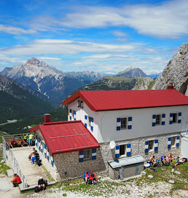 Die Hütte ist ein wichtiger Stützpunkt für die dritte Etappe des Dolomiten Höhenweges Nr. 4.
