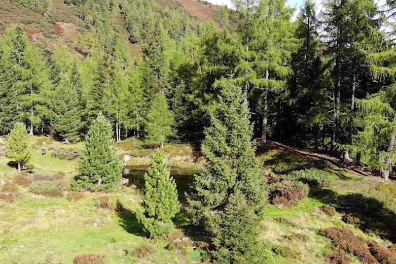Auf der Terrasse rund um die Hütte haben bis zu 80 und in der Stube rund 40 Gäste Platz. Während die Erwachsenen in und an der Hütte rasten, können sich Kinder rund um das urige Schutzhaus, zu dem auch ein Weiher gehört, ausleben.