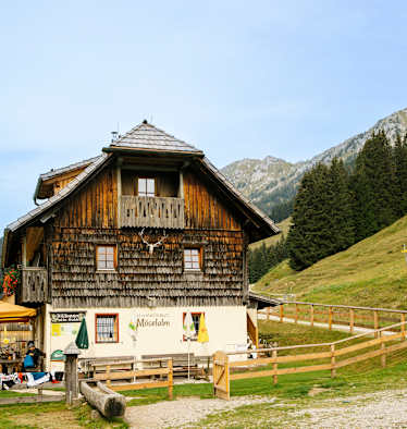 Nächstgelegene Hütte: Tröpolacher Alm (1.656 m, 1 h); Tressdorfer Alm/Schaukäserei (1.600 m, 1h)