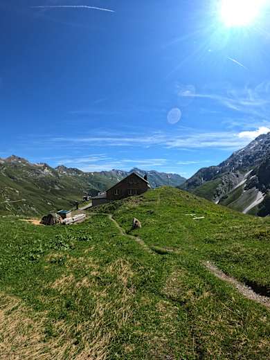 Mittagssonne über der Sardonahütte Foto: Pascal Schumacher // @ pazcal__