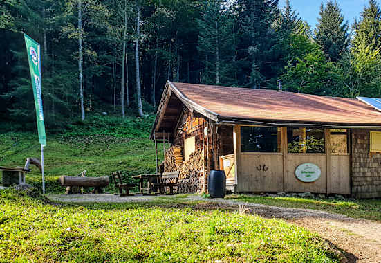 Der Parkplatz ist 10 Gehminuten von der Hütte weg. In besonderen Fällen kann auch direkt bis zur Hütte mit dem Auto gefahren werden.